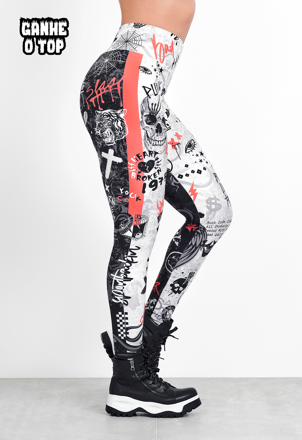 A LEGGING FITNESS ESTAMPADA cintura alta da Rock foi desenvolvida com modelagem anatômica, com um cós de 10 centímetros super acinturado que valoriza ainda mais o seu corpo. Possui tecnologia anti desbotamento e alta durabilidade. Mesmo com o passar do tempo, sua peça não desbota, não deforma e permanece com as mesmas características de um produto novo! Indicada para a prática de atividades física, ela também pode ser usada no dia a dia para compor um look SPORT CASUAL. Produzida com tecido ELASTIC de alta tecnologia, proteção UV e gramatura mediana, oferece ótima compressão e evita qualquer desconforto quando o assunto é transparência. Mas sempre recomendamos o uso de peças íntimas sem costura e na cor nude (cor da pele) ao realizar seu treino. Composição: 91% poliéster 9% elastano.